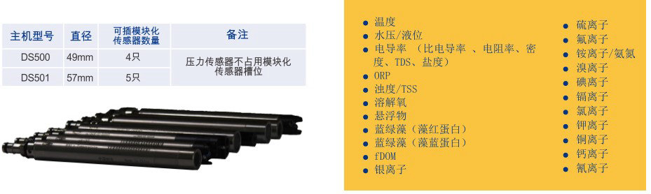 DS500 series is an in situ water quality analyzer based on advanced sensor technology, which can be used in portable field, and can also be deployed for long-term online monitoring of water level and a variety of water quality parameters. With small diameter and rich measurement parameters, DS500 series can be widely used in surface water/groundwater, aquaculture, environmental protection, geology, water supply and drainage and other water quality in-situ testing scenarios.